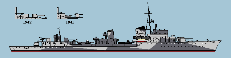The Z31 was the first ship of this class. It was ordered on 19.09.1939 and was laid down about one year later on 01.09.1940. After launched on 15.05.1941 it was commissioned on 11.04.1942. At this time, the 15 cm twin turret was not available, therefore the ship was completed with a single 15 cm gun.