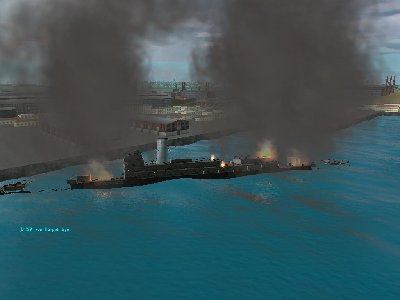 Strażacy walczyli z ogniem po obu stronach wejścia do portu. Po lewej stronie ogień mógł wywołać większe szkody, ale szybko udało sie opanować pożar statku amunicyjnego i obecnie trwało dogaszanie szkód. Po drugiej stronie płonęły 2 tankowce. Winson Anderson stał na krawędzi magazynu, przy którym cumował jego tankowiec i bezradnie patrzył, jak ogień trawi jego statek. Strażacy robili co tylko mogli, ale wszystko wskazywało na to, że tankowiec spędzi w tym doku o wiele więcej czasu. Poddenerwowany obrócił wzrok i spojrzał w kierunku wejścia do portu. W oddali widział walczące niszczyciele. Jednak jego wzrok przyciągnął spieniony ślad, który "wpływał" do portu. Dopiero po chwili zorientował się, że to torpeda, która kierowała sie prosto na jego Petroil'a.