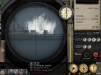 Na początku gry podniosłem peryskop i zobaczyłem IOWĘ. Myślałem, że ją zatopię, ale konwój zmienił kurs i prawie mnie staranowała... Zatopiłem Essexa i wystrzeliłem salwę w IOWĘ, ale nie trafiłem jej. Płynąc za nią (i unikając eskorty) przeładowałem torpedy i zaatakowałem płynący na czele lotniskowiec. Tuż przed śmiercią ostrzelał mnie z km'ów i ściągnał mi na ogon eskorte. Uszkodziłem C3 i chciałem go dobić, ale pobliskie zrzuty z powietrza i niszczyciel zmusiły mnie do zaatakowania innego mercha (też nie zatonął). Na 160 metrach uciekłem od konwoju