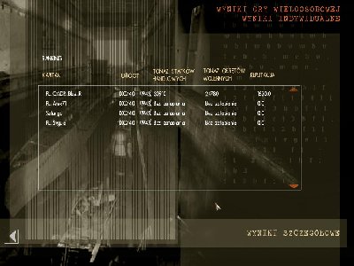 Strzelam do FIJI. Trafiony... Ale nie wygląda, że zatonie... to druga... 30 sekund później zaczał nabierać przechyłu.,.. Mam go w tabelce... I wtedy trafia w niego torpeda (chyba Sztangi).. Potem posłałem 2 celne w Bouge... Sztanga nie żyje (pewnie zatłukli go mysląc, że to ja)... W proteusa spudłowałem (nie zmieniłem kąta), ale torpeda trafiła T2... Proteus raczył zejść po 1 celnej torpedzie posłanej od strony rufy... Potem trafiłem T2 i posyłam mu 3 torpedę... I widzę, ze jego dziób znika pod powierzchnią wody... Jeszcze zaatakowałem T3, ale przez korwetę na ogonie udało mi się wystrzelić 2 torpedy (1 przedwczesna detonacja, 1 celna, ale uciekł)... Potem zeszłem na 120 metrów i po cichu odpłynąłem.. Zaczęły się ostatnie 15 minut... Po kolei padli Syguła i Arek71...