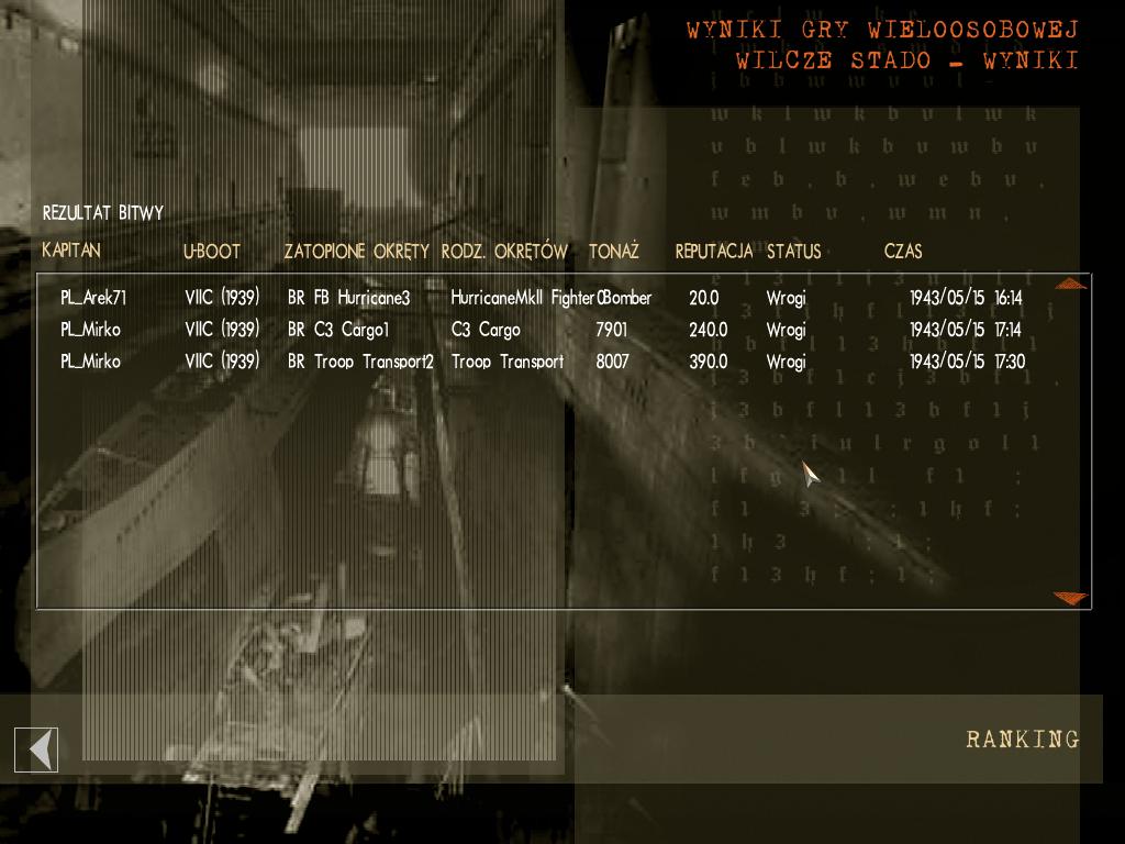 ZADANIE: Panowie, mimo iz kierowalismy was na przechwycenie tego konwoju to brak systematycznych jego namiarow dokonywanych przez nasze lotnictwo uniemozliwilo nam ustawienia Was w najlepszych pozycjach. Wedlug ostatnich danych lotnictwa konwoj znajduje sie w poludniowo-wschodniej czesci kwadratu CN22 i plynie kursem polnocno-zachodnim. Moze sie okazac iz czesc z Was bedzie musiala gonic za konwojem na powierzchni. Alianckie samoloty panuja nad calym obszarem morza dlatego plynac na powierzchni bedziecie narazeni na atak z ich strony. Jednak tym razem mamy nieco szczescia. Wedlug zdjec lotniczych konwoj jest slabo chroniony. Powinno to pozwolic Wam na ostrzal artyleryjski okretow konwoju.