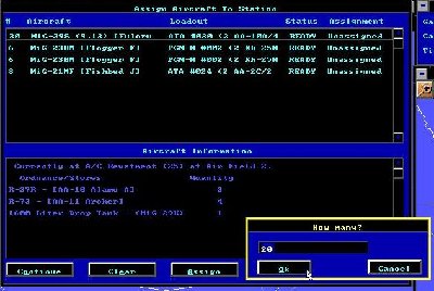 8. Teraz gdy wiemy jaka misje będziemy wykonywać i nasze samoloty są do niej przygotowane ( pełne baki, oraz adekwatne uzbrojenie ) zaznaczamy jednostki i naciskamy ASSIGN. Teraz dostaniemy pytanie ile samolotów mamy zamiar wypuścić, wpisujemy odpowiednia ilość i naciskamy OK ( zdjęcie nr. 11 )