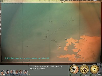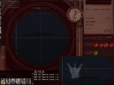 Ponieważ płynęliśmy w miarę wczesnym roku, postanowiłem wykorzystać słabszą widoczność i zrobić to, co starałem się zrobić w kampanii... Korzystając z czatu restrykcyjnego zorganizowałem atak. Po 15 minutach zauważyłem DD i natychmiast zawróciłem i płynąć wzdłuż kursu konwoju starałem się metodą 3''15''' zmierzyć prędkość konwoju, przy okazji podając jego namiar. Jedyny, kto odpowiedział o pozycji był Jacek (widać na screenie 1.jpg), ale nie udało mi się dostać namiaru, aby na przecięciu nasłuchów znaleźć konwój. Mierzyłem HUNT'a i wiedząc, że on zygzakuje i płynie szybciej od konwoju wiedziałem, ze prędkość konwoju jest niższa niż 9 węzłów. (2.jpg) Podałem namiar i prędkość (tu nawet wszyscy odpowiedzieli). Tylko Jacek twierdził, że ma namiar po zupełnie innej stronie, ale w końcu zaatakował ten sam cel. I wreszcie, gdy Sebol i Jacek zgłosili, że atakują, ja też przystąpiłem do zorganizowanego ataku.