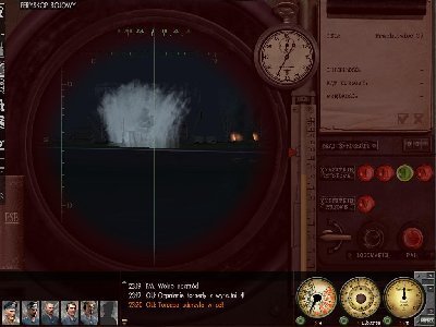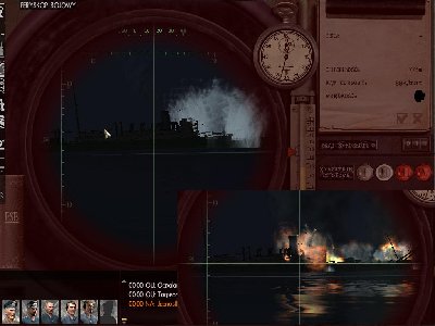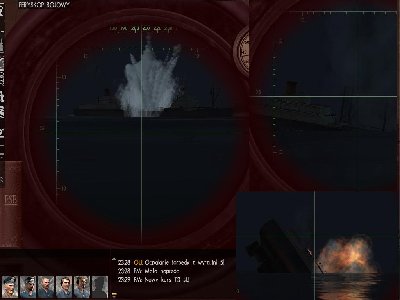 Zanurzyłem po zobaczeniu dd, przeszedł obok mnie i znikł, za rufą też jeden majaczył we mgle. Wynurzenie, przedemną mały tankowiec, strzał z najbliższej odległości, niewypał, biegła idealnie na niego. Omijam go łukiem i wpadam na trnsporta koło 3500t, ustawiam się do strzału, nagle zaczynają świecić śnierzynki, za chwile pociski. Strzelam, zanurzenie peryskopowa, uszkodzony kiosk i działo. Załatwił mnie dd którego ja zobaczyłem dużo za późno za rufą, zaaferowany sytuacją przedemną . Wyskoczył zza tankowca, uciekałem ale nie było szans, idealnie mnie obłożył. KIA.