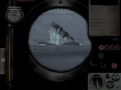 Następnie statek amunicyjny - poszła torpeda pod kil ( ) pozostawiłem zapalnik na kontaktowy i przeszła nie wybuchając. Kolejna już trafiła bez zarzutu. Gdy obserwowałem tonący statek, nagle usłyszałem ping ping ping. Znowu się zagapiłem - ALARM, cała naprzód zanurzeni, zwrot o 90st. Wybuchy trzęsą okrętem - bez uszkodzeń. Kurs na głębszą wodę przy samym dnie, co jakiś czas wybuchają bomby, ale szczęście mi dzisiaj sprzyja.