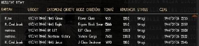 Płynęliśmy kierując się namiarami hydro i po ok 30 min zauważyliśmy dym na horyzoncie, gdy nagle wokół nas rozległy się wybuchy bomb - prawy diesel zniszczony, kompresor uszkodzony, woda w przedziale maszynowym. Udało się jednak naprawić uszkodzenia i wyminąć zmierzający w naszym kierunku eskortowiec. Dochodzimy do konwoju i zauważamy okręty desantowe. Wykonujemy klasyczne podejście do ataku, lecz nagle słychać ping ping - zostaliśmy namierzeni. 3 eskortowce płyną na nas. Nie ma gdzie się ukryć (tylko 44 m pod kilem) więc przyjmujemy walkę będąc na peryskopowej - odpalamy salwę torped i jedna fregata schodzi na dół. W ciągu następnej godziny udaje się nam uniknąć kolejnych ataków, a co najważniejsze zdołaliśmy zatopić kolejny okręt nieprzyjaciela.