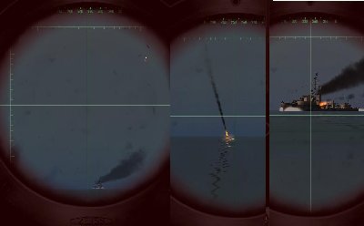 Widać na nim eksplozję torpedy. Akurat to jest moja torpeda z wyrzutni numer V. Skąd wiem?