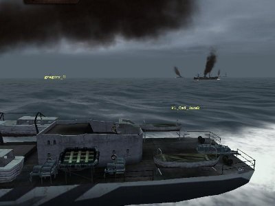 Wynurzyłem się i płynąłem wprost na słyszany w oddali konwój. Po chwili kolejny uboot wynurza się po mojej prawej stronie. Wtem z mgły wyłania się DD-ek. Rozkaz zanurzenia alarmowego został wykonany bezbłędnie i wszedłem w głębiny . Jakie głębiny ????? 85m . Ale nic to odbicie na lewo by zejść z kursu niszczycielowi, cicha prędkość 2w.