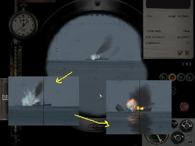 2. Zygzakowanie z takiej odległości można określić inaczej. Strzelając salwą (za pierwszym razem strzeliłem normalnie, potem posłałem salwę)... Wyliczasz prędkość. 1 torpeda normalnie, druga węzeł, dwa wolniej. Przyznam, ze w moim przypadku okazało się to szczęśliwe, bo o ile wolniejsza trafiła cel, to szybsza trafiła inny cel