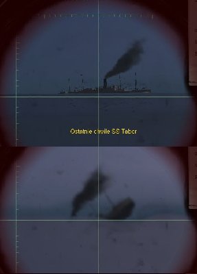 Po wyjsciu z konwoju los usmiecha sie po raz drugi. Ta sylwetka, skad ja ja znam, 2 maszty, hmm. Aaaa, no nie, to musi byc krazownik pomocniczy JKM. Pomiary, strzelamy 2 torpedy, obie w celu. Niemal w tym samym momencie NA obwieszcza zatopienie (skad on to wie dziad jeden). Radosc nie trwa dlugo, obrot peryskopem a tu z prawej nadplywa tanker i medium, bez eskorty ! Ale nam dzis szczescie sprzyja. Tankera pomijamy, maly siakis. Czekamy na medium. Chwila, chwila cos tu nie gra. Dlaczego na burtach jest flaga USA. Sh...se tego jeszcze nie mozemy. Potem probowalem sprzatnac z dziala tego malego ale juz byl daleko.