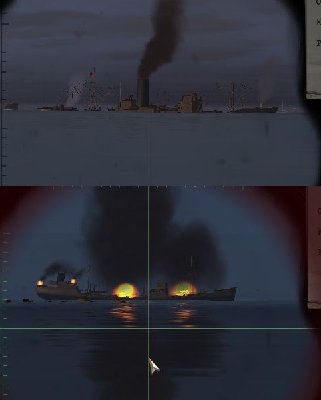 Strzelałem jeszcze do kilku jednostek jednak bez widocznego skutku widać źle robiłem pomiary albo mi coś optyka szwankowała ... konwój szybko odpłynął więc nie było już nic do zrobienia jak po cichu oddalić się na bezpieczną odległość jak się okazało była to słuszna decyzja
