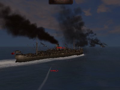 Warunki idealne płyniemy na powierzchni po zauważeniu dymów na horyzoncie zanurzenie .Podejście do konwoju wręcz idealne,wychylam peryskop i widzę T3 zbieram dane i odpalam pierwsza poszła ..... po chwili słychać wybuch trafiona jednostka płynie dalej odpalam kolejną torpedę niestety po kilkudziesięciu metrach wybucha ,posłałem kolejną która trafiła w cel jednak tankowiec mimo uszkodzeń odpłynął.