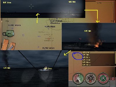 Atak Andreva pokazał mi jedno. MOJE DD SĄ ŚLEPE! Przecież, ja zostawiłem odsłonięte flanki! 2 DD natychmiast ruszyły na pełnej prędkości naokoło konwoju, aby wychwycić inne suby. Okazał się to strzał w dziesiątkę. Niedługo potem jeden z tych DD wykrył Matrose. Rzuciły się na niego 3 DD. Po kilku minutach zacząłem się zastanawiać, czy nie atakuję wabii, bo choć DD strzelają, to jednak cel jest cały czas w tym samym miejscu +- kilkanaście metrów... Nagle 1 z zawracających DD wykrył kontakt. Aha. To wabie, a Matrose tu ucieka. Pot mnie zalał, gdy okazało się, że przy liniowcu nie płynie Matrose, a Marco.
