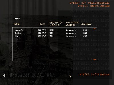 uszkodzenia byly, przecieki na rufie i unieruchomiona jedna śruba i co najgorsze kompresor, strasznie syczal zagluszajac nasluchiwanie. Zwiekszylem predkosc do 5 aby szybciej sie zanurzac i krecilem podwodnego bączka w nadzieji ze mnie nie trafią. Potem silniki stop i cichutko bączek w druga stronę. Nie trafili więcej, pingi byly od strony rufy i chyba sie udalo bo rzucali niecelnie, doszedlem do jakichs 136m zanurzenia gdy towarzystwo eskorty zostawilo mnie i pognalo do kogos innego (potem sie okazalo że to kapitam Tes powzial kuracje odstresowania w tancu z eskortowcami). Slyszac wokól siebie spokój i widząc pozostaly czas misji dalem wynurzenie alarmowe i na 10 minut do konca wypalilem salwe z 6 torped do konwoju i znowu nur głebiej, bo samoloty ciągle mogly tu byc, najblizszy statek otrzymal dwa trafienia z tej wiazanki i zatonął. Misja dobiegła końca.
