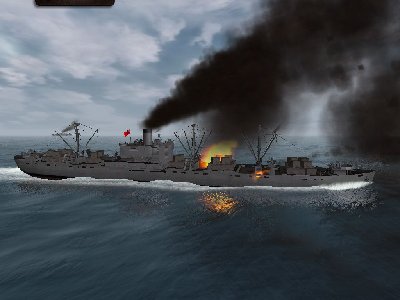 Zanim wyszedłem na peryskopowa było słychać nastepne serie bomb. Przez peryskop dojrzalem jakies 2-3 km dalej 3 niszczyciele rzucajace bomby, krążący samolot i statek który akurat dostał torpede i mocno zadymił horyzont. stwierdzilem że nie moge wplynac w to piekiełko bo to zbyt ryzykowne i wkonalem zwrot w lewo aby wystrzelic torped rufowe i odejsc potem pólkolem od polnocy.