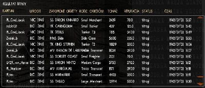 Jednak udało się wydostać z pułapki i po drodze zatopić jeszcze mały transportowiec. Tymczasem zginął Pablo i Zyziek. Czekając na koniec patrolu dostałem jeszcze komunikat o zatopieniu Markowa (na minutę przed końcem)