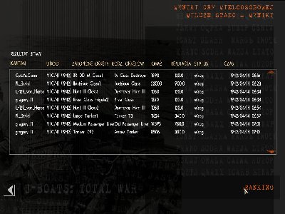 Patrol zaczeliśmy trochę później ponieważ koledzy byli tak mili i poczekali na mnie. DZIĘKI. Pwoli staję się etatowym pisaczem raportów. Chyba te góry tak na mnie wpłynęły. Znowu zaczęło się od małej jazdy. Wszyscy rzucili się na grupe uderzeniową. No i się zaczeło. Kapitanowie się nigdy nie nauczą (wcale nie mówię że ja się nauczyłem). Szylol znowu wchodził mi pod torpedę. Kręciła się blisko eskorta, słyszałem pingi. Zdjołem skubańca. A tu po patrolu słyszę że któś ściągnoł znad głowy Szylolowi River. Szylol w tym patrolu upolował min. CV - gratulacje. No cóż w końcu też poległ. Na ok. 50 min przed końcem McClane powiedział że nie może grać dalej bo ma robotę. Jest głęboko. Uzgodniliśmy razem, że po zakończeniu patrolu sprawdzimy kondycję jego okrętu. No i tak: płynął cały czas na jakiejś tam głębokoś,. był poziomo, nie bąbelkował, silniki pracowały. Uważam że SURV i tak też napisałem w raporcie.