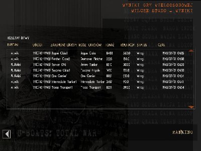 Na pochwałe zasługuje kpt wilk ,który pięknie wyszedł z okrążenia 6-7 DD po zatopienu lotniskowca , poczym wykonał drugi atak na konwój siejąc niezły zamęt .