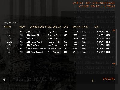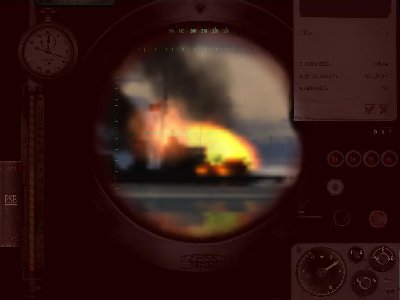 Potem zanurzenie i przeładowanie cygar. Udało się to nawet bez wykrycia DD. No to siup na peryskopową i.... O mało co nie zobaczyłem koloru oczu kapitana DD który szarżował na mnie prosto od dziobu. Mój hydroakustyk chyba zasnął albo zemdlał z wrażenia, bo za cholerę nie wiem jak to możliwe, że go nie słyszałem. Puściłem szybki strzał przed siebie chcąc zmusić DD do manewru. Mimo odległości około 600 metrów zdołał wymanewrować szybką torpedę! W ciasnym zwrocie wypuścił serie bomb. Dwie poszły wokół mojego kisoku. Podwójna eksplozja i całkowita demolka kiosku. Optyka poszła w diabły, anteny, kiosk i poszycie też... O dziwo zachowałem 100% integralności kadłuba. Po tym stwierdziłem, że dośc wrażeń i poddałem tyły. Skok na 50 metrów, cichy bieg i prędkość 1 węzeł - w ten sposób odszedłem od konwoju i bezpiecznie opuściłem teren zmagań.