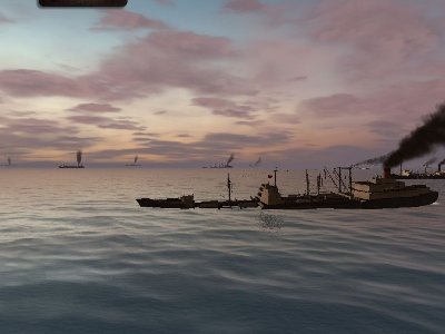 Godz 7:40 Odpalam druga torpedę , równierz do kolejnego stimera . Znowu celnie , statek uszkodzony płynie dalej .