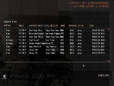 Odpaliłem ostatnią torpedę do podtopionego T3 (niestety może Janko powie co się stało, nawet nie wiem czy trafiła w niezbyt odległy cel, może nie zdążyła się uzbroić?) i uciekłem na głębinę. Po 10 minutach uników i kilku salwach nie słysząc już pingów czy odgłosów zrzucania bomb dałem cichy bieg... w rezultacie dostałem celną salwą na 160m pięć minut przed końcem patrolu.