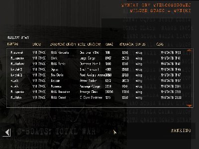 Patrol ciężki ze względu na warunki pogodowe. Pierwszy pojawił się Large Cargo. Zszedł po jednej rybce (wysłałem dwie dla pewności). Następny był Arrow, ale nic sobie nie robił z władowanych w niego dwóch torped. Ktoś go później dobił. Odpuściłem, bo z mgły wyłoniła się sylwetka( czy ja dobrze widzę ?), tak to był Revenge. No to zmiana kursu i pierwsza pod kil poszła. Na tyle skutecznie, że zdołała go zatrzymać. Po kliku chwilach wybuch na dziobie. Wiedziałem już, że nie strzelam sam. Koniec końców skupiłem się tylko na nim. Nie chciało mi się ganiać za pozostałymi statkami tym bardziej, że pogoda robiła się coraz gorsza. Łącznie łyknął chyba z 9 torped. Po mojej, ostatniej wybuchł lekki pożar na pokładzie, pohuśtał się kilka mniut na falach i wreszcie poszedł na dno. Odporna bestia. Później zrobiło się pełno DD-eków (jak zwykle na koniec), ale dzięki pogodzie trudno im było mnie namierzyć i w ten sposób zakończyłem ten wyczerpujący patrol. Dzięki Mirko za pomoc w uciszeniu tego kolosa.