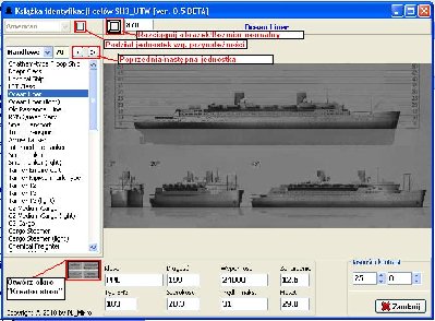 W założeniu program ma ułatwić to zadanie. Jedną z jego funkcji ma byc składanie 4 obrazków na stronę (przy orientacji poziomej ) lub 3 (przy pionowej) plus nadruk na każdym obrazku najważniejszych danych danej jednostki takich jak nazwa, wyporność długość i zanurzenie. Dodatkowo ma być moduł drukowania.