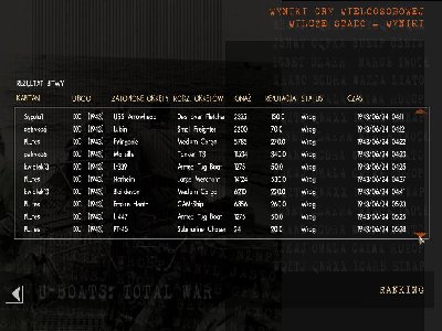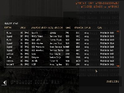 Zaczelismy od... wykrycia. "Wykryli nas! Co, jak, dlaczego ?!" zaloga patrzyla zdziwiona, jakby dostala zatwardzenia. "Peryskop w gore". A tam latarnik, 200 metrow od nas. "A to cwaniak. Wynurzenie. Zaloga do dziala. Coooo? Nie co, tylko wykonac." Po chwili dolaczaja do nas kolejne dwa uboty. "Von Szygulen" zaczela radosnie wymachiwac zaloga. Egzekucja byla szybka ale bolesna. Jakis paj.... trafil naszego dzialonowego. Ach te zoltodzoby z U-553. Bywaj brachu.