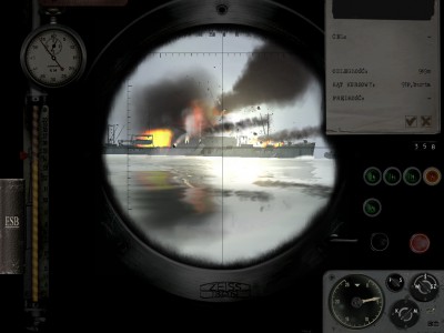 Konwój zrobił skręt, gdy wchodziłem... No to czekam... patrzę, jak Troop pędzi na pełnej prędkości.. Zmierzyłem odległość, ręcznie maksymalną prędkość i na wszelki wypadek FAT ustawiony na zygzakowanie... Ale trafiłem idealnie. Potem z dużej odległości dorwałem Liberciaka oraz zatopiłem drugiego Troopa... Zero eskorty w pobliżu... I żadnych śladów graczy! Potem okazało się, że tajemnicza absencja reszty była spowodowana właśnie absencją (u mnie) eskorty.