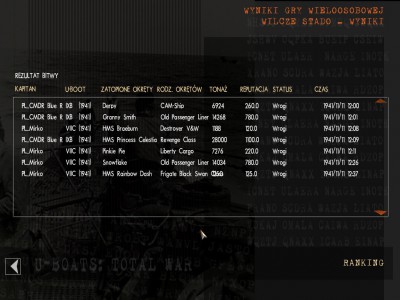 Po rozpoczęciu patrolu poszedłem coś wrzucić na ząb .Stąd też troszke się spóźniłem ,co skwapliwie wykorzystała reszta stada . Kiedy ja zaczynałem zbierać dane do ataku czyjeś torpedy już dochodziły celu . I to w dodatku zawsze tego samego w który mierzyłem . Pierwszy był OP ,później revenge , kiedy zobaczyłem jak przechyla się na burte ,odpaliłem 2 torpedy do poprzedzającego go Troopa (zapalił się i popłynął dalej ) Kolejny to następny OP , i znów sytuacja się powtarza , ktoś mnie znowu uprzedza. W pewnej chwili nadpływa krążownik , jednak pierwsza torpeda eksploduje przedwcześnie ,a druga mija cel . Pędzący za nim T3 jest zbyt blisko ... Cały konwój już opdływa , w oddali pozostał jeszcze jakiś DD . Decyduje sie na atak . Odległość ok 2600 m i.... znowu bum , ktoś mnie znowu uprzedza . Złamka W akcie desperacji taranuje rozbitków na tratwach .A co ???