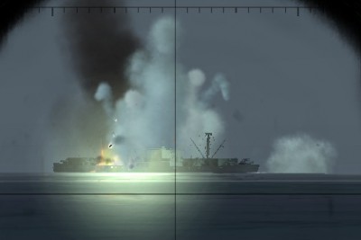 2. Drugą fregatę, ujrzałem w kilka minut później. Ładnie wystawiła mi burtę, więc skasowałem ją pierwszą torpedą, mając w pamięci błąd z poprzedniego patrolu.