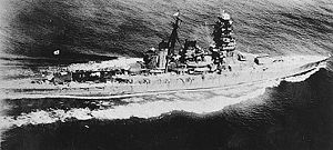 Zdjęcie przedstawia Hiei - japoński pancernik klasy Kongo, zatopiony w trakcie bity o Guadalcanal (prawdopodobnie) przez eskortujący go niszczyciel Shigure.