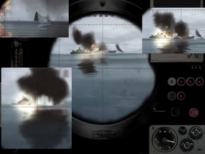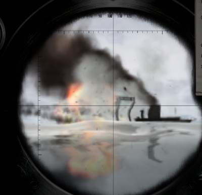 No to zaczałem polować na T3. Trafiłem 3 z nich. 2 zatopiłem, trzeci... Został 5-6s przede mną trafiony przez U-55 i wyleciał w powietrze. Trafiłem już we wrak. (6.jpg)
