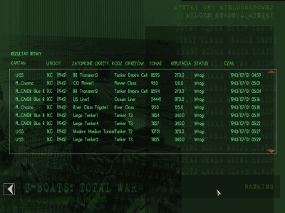 Wtedy wykrył mnie niszczyciel. Szybkie zanurzenie. Na 40m trzęsie okrętem, ale bez spadku integracji. O dziwo następne ataki dziwnie daleko... I wtedy U-55 zgłasza KIA. Był zaraz obok mnie. Ja po cichu odeszłam i po półtorej godziny patrolu bez torped byłem za konwojem. Za zgodą pozostałych wyszedłem na obserwatora i potwierdziłem SURVy reszty. I tak skończył się patrol.