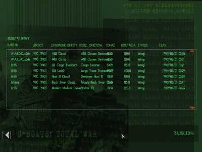 Zszedłem na 184 m, załadowałem wszystkie wyrzutnie i zacząłem się wynurzać ale na 100 m usłyszałem pinganie i musiałem zwiewać znów na dno.