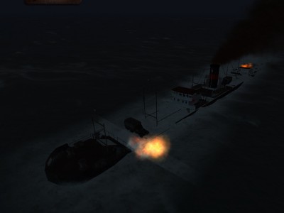 Idę w stronę celu i po 15 minutach zanurzam się i rzeczywiście. Po chwili DD wyłaniają się z mgły. I poszły w stronę osób, co polują na DD (1.jpg). Skierowałem się na północ, aby wyjść przed konwój. Zbliżając się wystrzeliłem wolnego FAT. I okazał się to strzał w dziesiątkę, bo potem torpeda (już bliska wygaśnięcia) dopadła bardzo cenny cel. Ale o tym za chwilę. Wchodząc prawie amunicyjniak mnie staranował (2.jpg). W tej samej chwili posłałem 1 torpedę do Ore. Niestety, lekko pochylony odszedł. Ale Hunter wtedy już dochodził i dobił go. (2a.jpg)