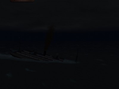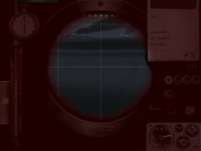 W końcu OW coś zauważył. Przeszukuję horyzont i widzę jakiś jasny kształt. Zanurzenie i zaczynam rozpoznanie jednostki, zastanawiam się pod jakim kątem jest do mnie ustawiona, bo miałem problem z rozpoznaniem masztów. Podszedłem bliżej i zidentyfikowałem... górę lodową . Zaraz obok wyłania się z mgły DD-ek, którego wykrył OW, na szczęście mnie nie widział.