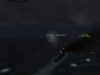 Clemson z tyłu konwoju zaczął kogoś atakować, ORP Piorun który szedł prosto na mnie zaczął zygzakować i szedł idealnie pod kątem prostym z rufową wyrzutnią, odległość 600m, prędkość 9 w, PAL !!!, trafienie idealne, lecz mało przemyślany ruch, clemson z początku konwoju zaczął się cofać w moją stronę, zanurzenie 80m, 1w i cicha praca, po 20 minutach powrót ta peryskopową, clemson szukał za bardzo z tyłu.