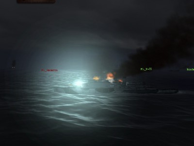 Gdy się fajerwerki zaczęły zebrałem dane o Szwedzie, posłałem torpedę i przeszła, bo zawrócił. Ale są i dobre strony tego, że nie trafiłem: w momencie odpalenia nasza jednostka przecięła kurs torpedy, na szczęście przeszła za, gdybym przewidział, że Szwed zawróci tobym naszego na dno posłał.
