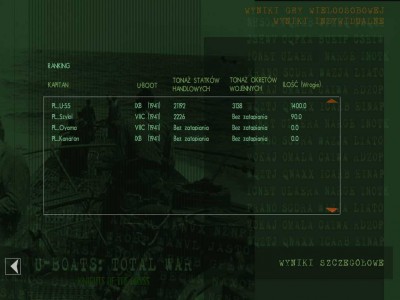 Zaczęło się zwyczajnie: podpłynąć do konwoju. Zanurzam się i nic nie słyszę... Słuchawki za cicho o czym się zorientowałem po 2 zanurzeniu. Nie znając przybliżonej odległości konwoju płynę na 1/3 i jak zwykle zostałem z tyłu... Po 50 minucie patrolu postanowiłem trochę przyspieszyć, bo bym nawet do konwoju nie dopłynął. Nagle z mgły wyłania się fregata i płynie tak mniej więcej na mnie. Sobie myślę "jakim cudem"? Myślałem czy jej torpedy nie posłać, ale bym nie trafił. Uciekłem na 25 metrów gdy nade mną przepłynęła i... nic. Wychodzę na peryskopową, w między czasie jeszcze raz coś nade mną przepłynęło. Co tam się dokładnie działo to na filmie będzie. Słyszę pingi, alarm i na 180 metrów. Na głębi słyszę jak nade mną znowu coś przepływa, ale do jasnej ciasnej, przecież na takiej głębokości niszczyciela tak wyraźnie bym nie słyszał... Ostatnie minuty patrolu, wychodzę na peryskopową. Na 50 metrach słyszę pingi, zostaję na tej głębokości i nasłuchuję. Nagle się z czymś zderzyłem na 50 metrach Jak się okazało to był Oyama i wcześniej na głębi to też był Oyama nade mną i podobno 5 metrów brakło i byśmy się zderzyli. W ostatnich 3 minutach chciałem zebrać dane i posłać szybką rybkę, ale niestety mnie wykryli.