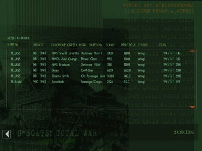 PL_U-55 - KIA Destroyer Hunt I "HMS Sheriff Silverstar" - 1 000 Flower Class "HMCS Aunt Orange" - 950 Destroyer V&W "HMS Braeburn" - 1 188 CAM-Ship "Derpy" - 6 924 Old Passenger Liner "Granny Smith" - 14 268