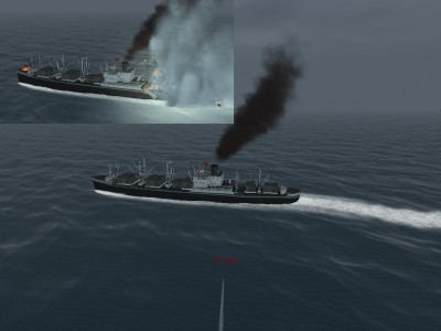 No to wchodzę, ustawiam się i o 8:47 wystrzeliłem salwę torped do tankowca Empire Celt i T2. Do T2 spudłowałem (ktoś nade mną czuwa), a EC ku mojej radości wyleciał w powietrze.