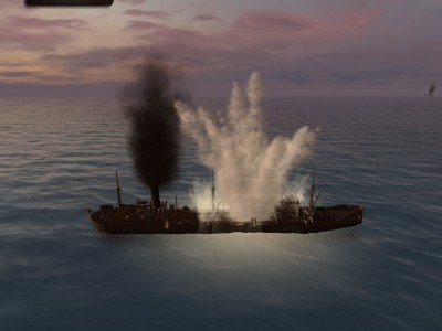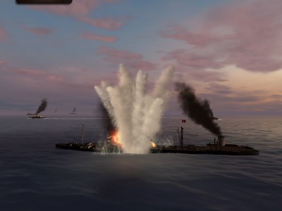Drugi kwiatuszek jedna nie odpuszcza, pingi uderzają o kadłub. Robię zwrot i odpalam torpedę do zastopowanego tankowca - tonie.