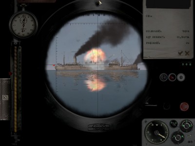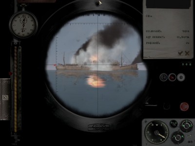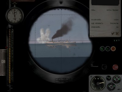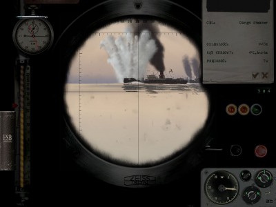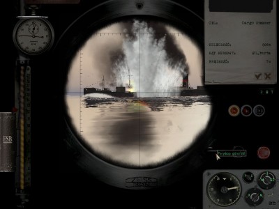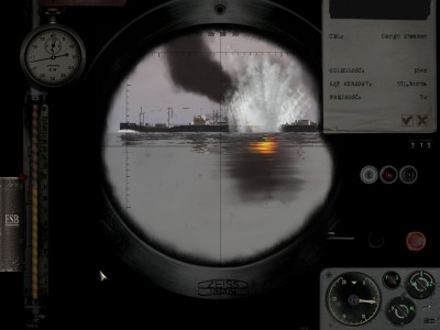 "Szybkie" przeładowanie (10 minut) jednej torpedy i szykuję się na okręt płynący za Cargo Steamerem czyli... Cargo Steamer. Oby jedna torpeda starczyła. Trafiłem za centralę, zatonął po około minucie.