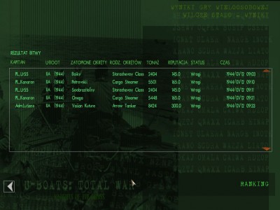 Zatrzymuję okręt, bo niedaleko przepływał niszczyciel. Nagle orientuję się, że jestem na 6 metrach... Nienawidzę kaczek Zostałem ostrzelany, ale nie trafiony, zanurzenie na 150 metrów, ale po bombardowaniu zwalniam, żeby mnie nie słyszeli. W tym czasie zamiast zanurzać się na 120 metrów i głębiej patrzę, że powoli wypływam... Po kilku pingach i niecelnych bombach odpuścili mi i mogłem spokojnie płynąć powoli się wynurzając do końca patrolu.