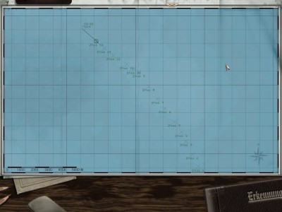 Płynę na powierzchni, po około 25 minutach meldunek o okręcie wojennym, zanurzenie na peryskopową i usłyszałem kiepski meldunek: Handlowiec, oddala się... Wiem, że nie mam szans przechwycić konwoju przy 2w. a szybciej nie chciałem płynąć, 2 dd-eki się kręciły.