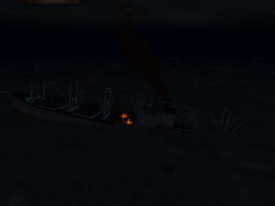 Kolejno celuję do tankowca, z dwóch torped, jedna trafia w śródokręcie. Celuję ponownie i poprawiam. W międzyczasie tankowiec zostaje trafiony 2 torpedami innego okrętu, ja zaś wystrzeliwuję, kolejne rybki by dobić, zastopowaną cysternę – tonie dopiero po kolejnych 3 trafieniach.