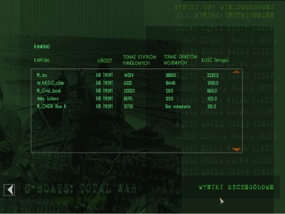 Co jest ? Tak szybko ???? Zanurzyłem okręt zmieniłem kurs. Na szczęście, żadne wybuchy nie wstrząsnęły okolicą. Próbowałem wydusić od Pierwszego, co to za samolot widział: myśliwiec ??? bombowiec ??? Niestety zamknął się w sobie i tajemnica nigdy nie została ujawniona. Za to ujawnił się niszczyciel z polską banderą, klasy Bourrasque. Który skutecznie odciął mnie od sygnałów na hydro. Na szczęście robiło coraz ciemniej, Polak oddalił się na 1,5 km, a ja wynurzyłem okręt i całą naprzód popłynąłem w kierunku frachte.