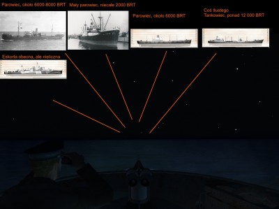 Półzanurzenie, gonimy dalej, wachta szuka eskortowców, jeśli któryś zacznie płynąć w naszym kierunku lub światło reflektora zacznie się zbliżać schodzimy na peryskopową i dalej próbujemy atakować tankowiec.