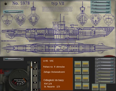 Przygotujcie okręt do wyjścia w morze na początku grudnia 1940. Wyjdziecie w morze z początkiem grudnia wraz z U-96. Waszym głównym celem jest dotarcie do St. Nazarie, ale po drodze wykorzystajcie sytuacje i w kwadratach AN i AM zatopcie jak najwięcej statków wroga.